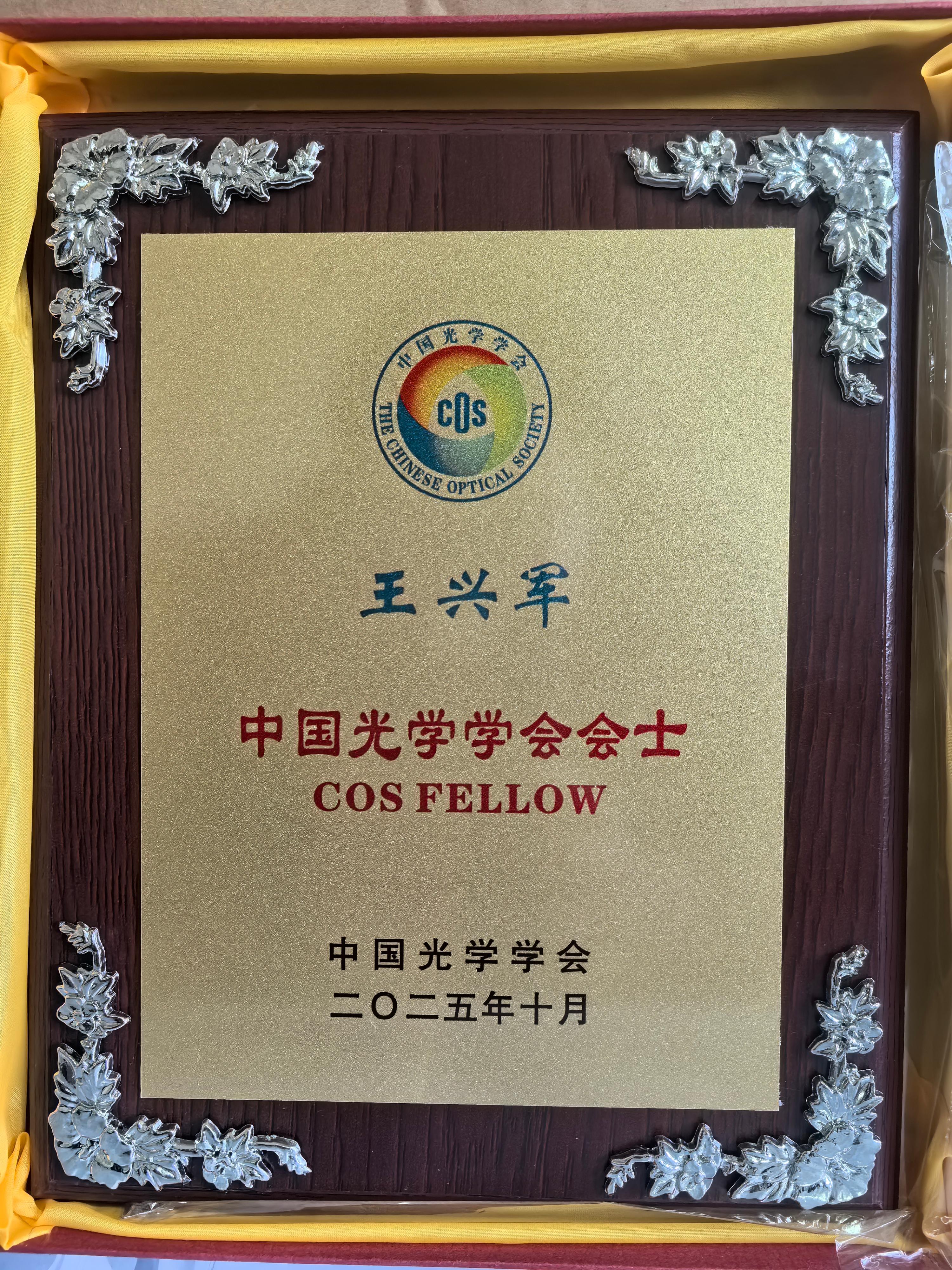 During the ceremony, the Fellow Conferment Ceremony of the Chinese Optical Society (COS) 2025 was held, at which Professor Qihuang Gong presented plaques to the newly elected Fellows. Professor Xingjun Wang from the Center was elected a Fellow of the Chinese Optical Society (COS Fellow) for 2025.